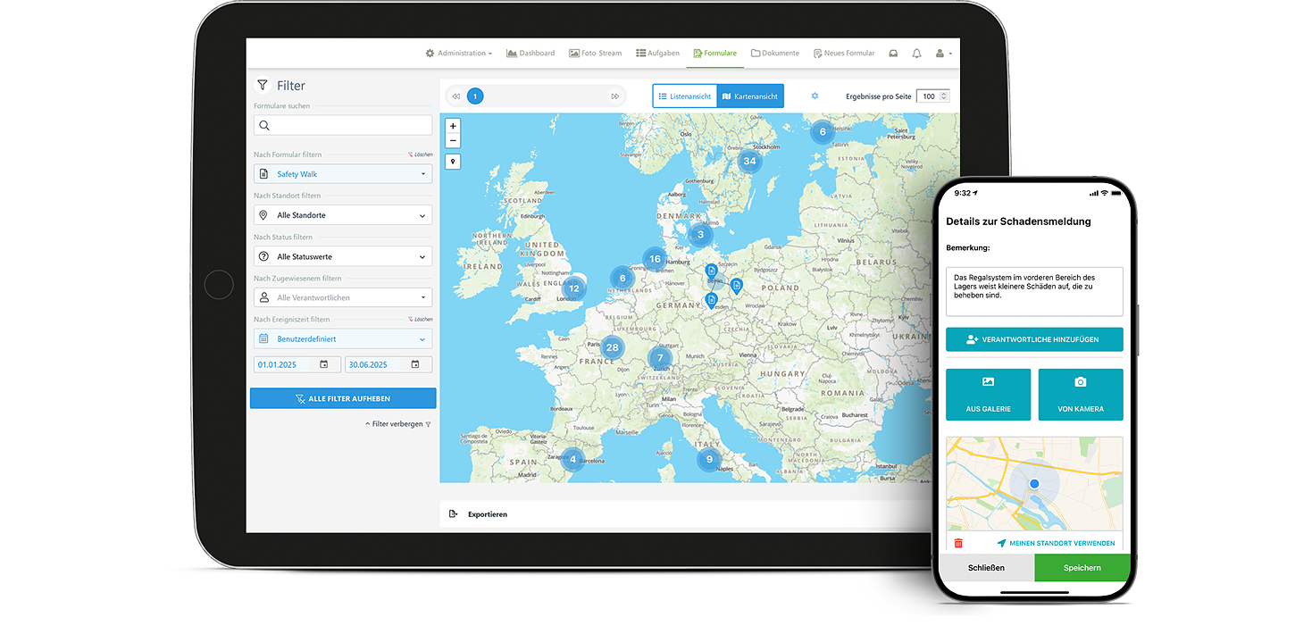 Während eines Audits oder einer Begehung ist es in der Regel erforderlich, Informationen direkt vor Ort zu erfassen – doch ein Computer ist gerade nicht in Reichweite. Zwischenlösungen auf Papier bedeuten zusätzlichen Aufwand, Verzögerungen und möglichen Detailverlust: eine Hürde für effektives und zügiges Reporting.